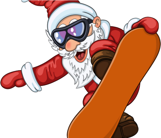 Snowboarding Clipart Santa - Santa Snowboarding - Png Download