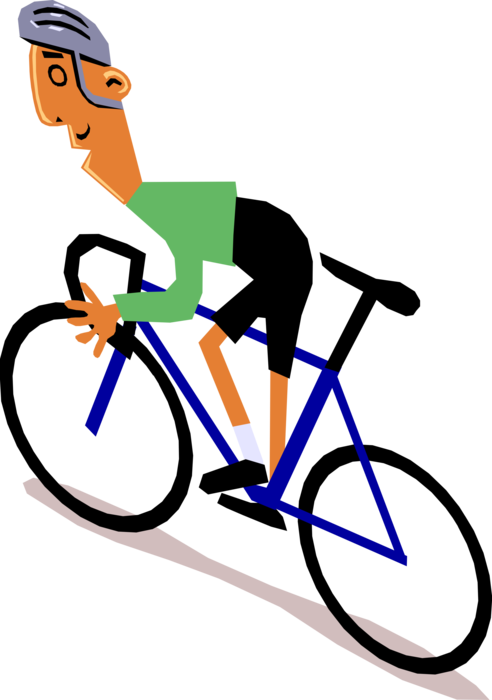 Vector Illustration Of Racing Cyclist Rides His Bicycle - Cyclist Cartoon Clipart