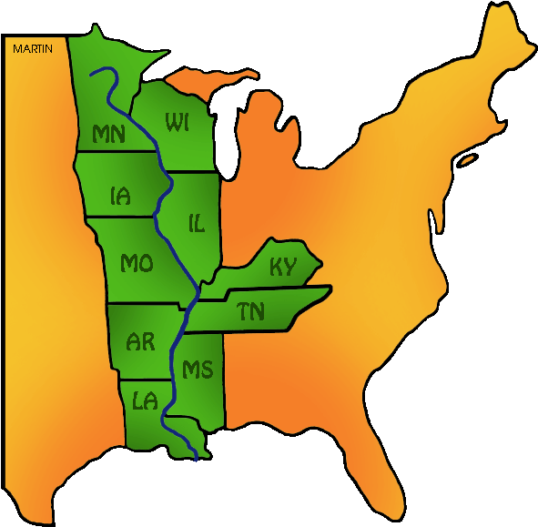 PinClipart Clipart United States Clip Art By Phillip Martin, Famous Landmarks - Mississippi River Clipart - Png Download