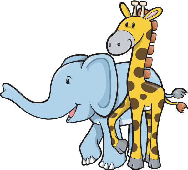 Clipart Giraffe Elephant - Giraffe And Elephant Cartoon - Png Download